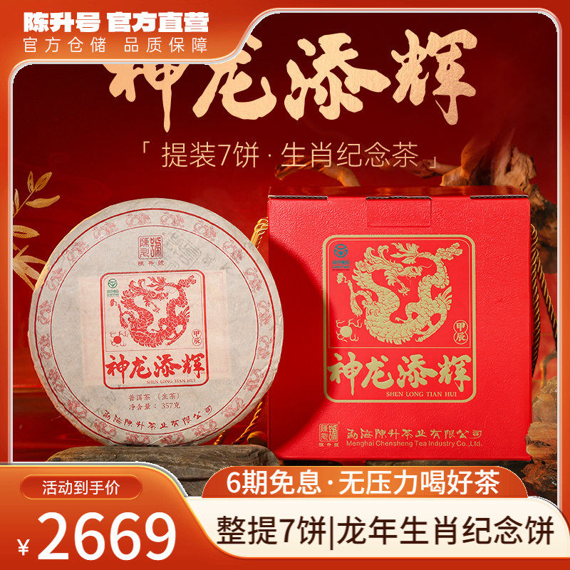【整提7饼】2024陈升号龙饼生肖茶普洱茶生茶云南勐海生茶饼茶叶