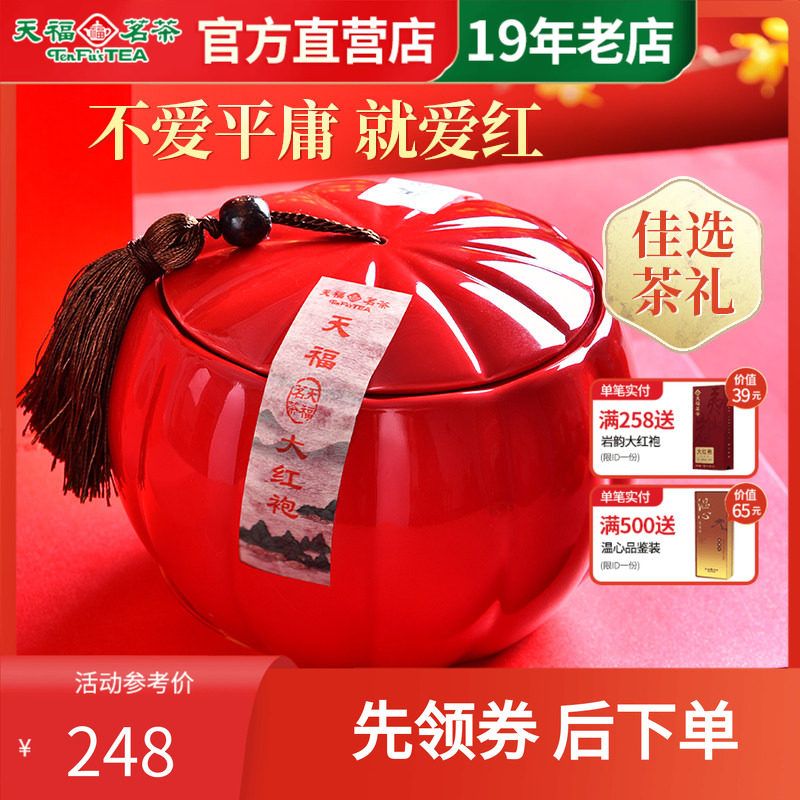 天福茗茶大红袍茶叶礼盒装正宗武夷岩茶乌龙茶特产200G瓷罐