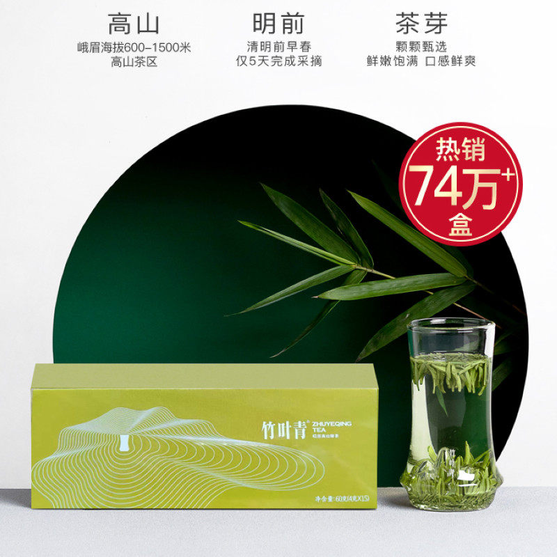 新茶2025 峨眉山竹叶青茶叶特级品味明前高山绿茶60g雀舌小袋装