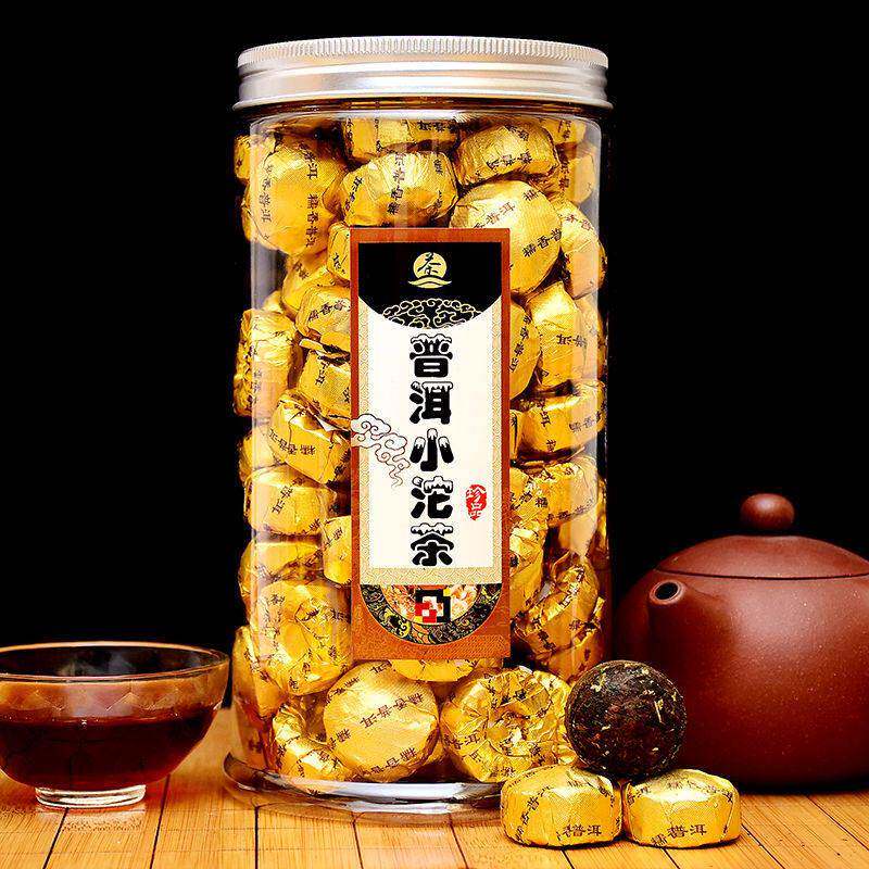 棠谦糯米香普洱茶小沱茶云南勐海陈年熟茶饼小金坨黑茶叶500g罐装