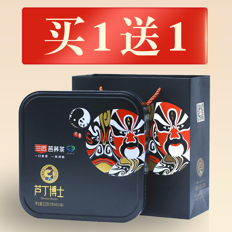 三匠黑苦荞茶芦丁博士脸谱225g四川茶叶大凉山特产麦香型礼盒装装