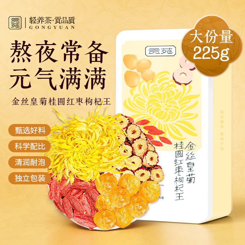 贡苑金丝皇菊桂圆红枣枸杞王225g泡水喝的饮品花草茶大份量菊花茶