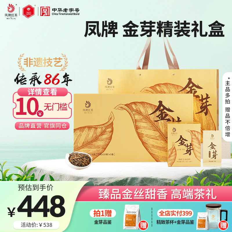 凤牌红茶正宗云南滇红金芽茶高档礼盒装特级茶叶150g节日送礼长辈