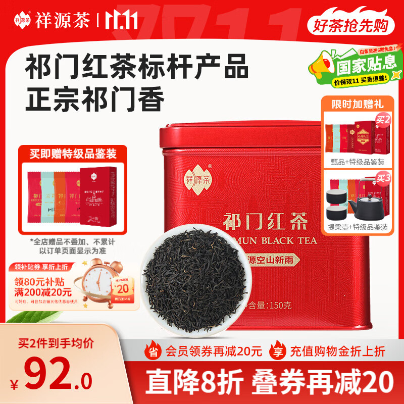 祥源茶 空山新雨祁门红茶 特级正宗祁红工夫红茶浓香型 2025新茶叶送礼 经典大红罐装150g