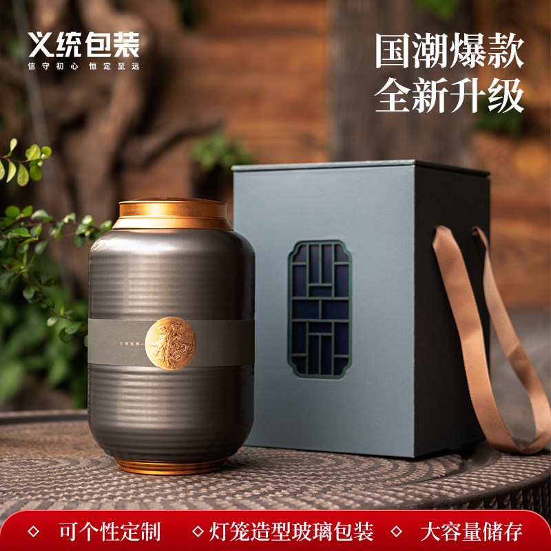 速发玻璃茶叶罐密封罐礼盒新款创意满堂彩龙井绿茶包装盒空礼盒一