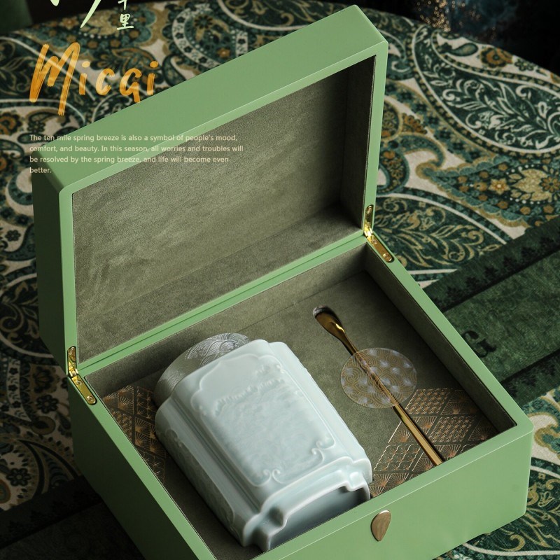 觅云裳烤漆木盒密封单陶瓷罐茶叶包装金骏眉龙井岩茶绿茶散茶通用
