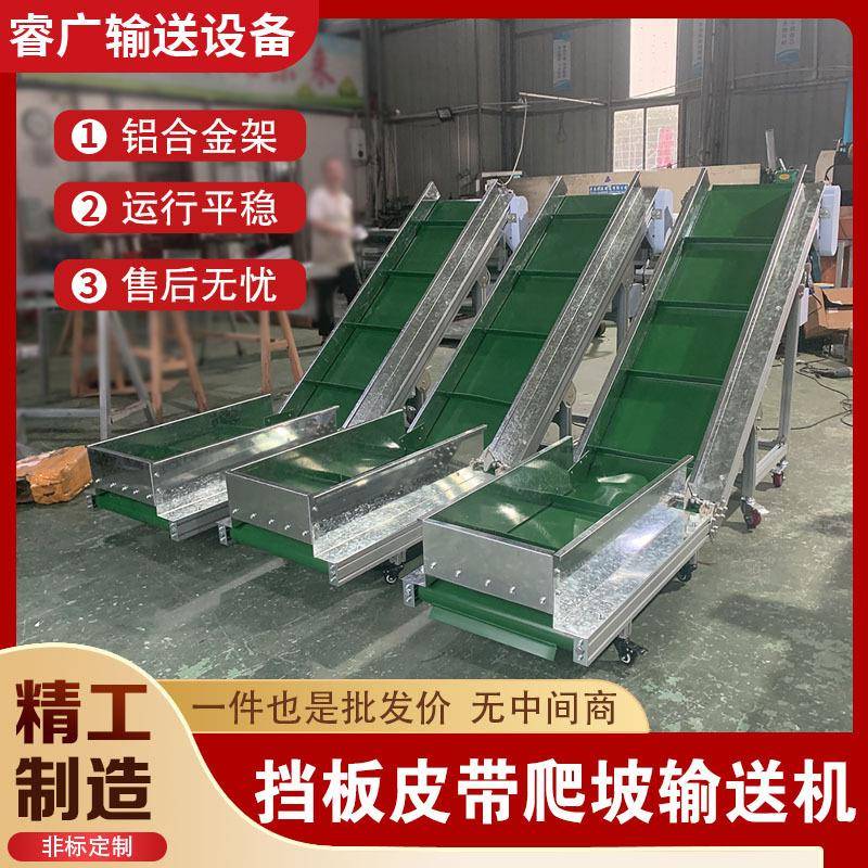 小型挡板爬坡输送机注塑机皮带输送带茶叶物料传送机防滑提升机