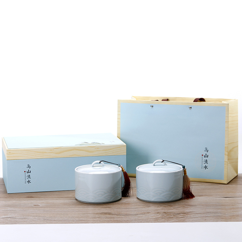 极速大境新品青瓷浮雕茶叶罐陶瓷高山流J水双罐礼盒装可装半斤绿