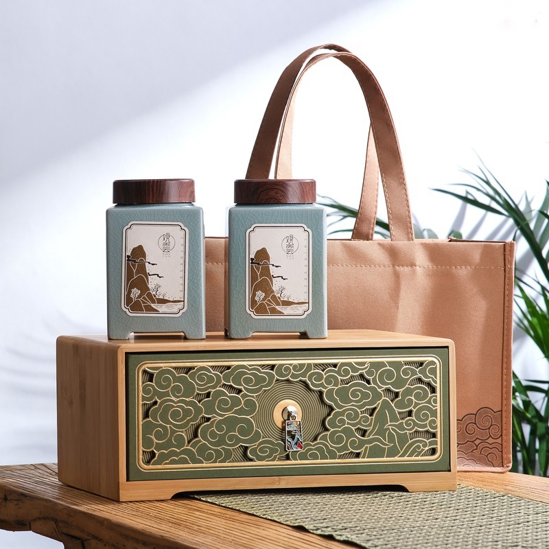 2022春茶竹盒高档陶瓷罐茶叶包B装盒空礼盒绿茶明前龙井礼盒装空
