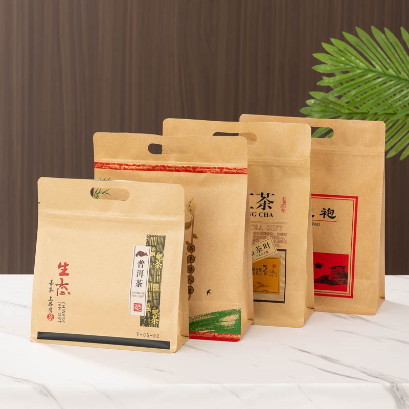 茶叶散茶牛皮纸包装袋 手提自立自封条方形袋 散茶八边封礼品袋