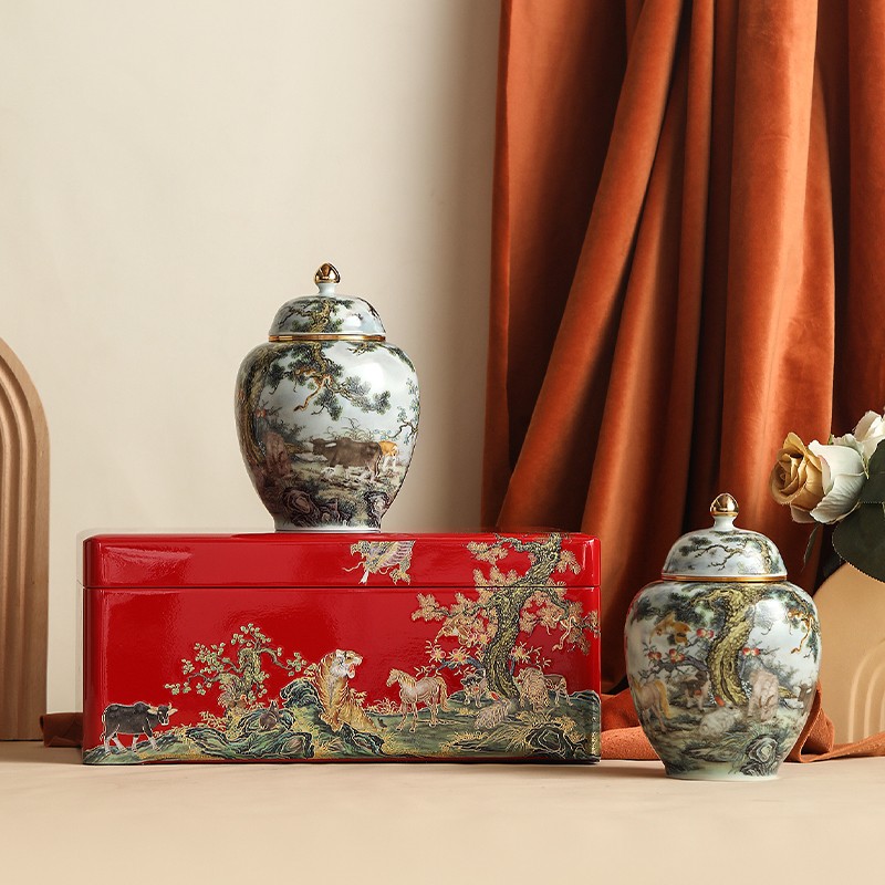 高档茶叶罐包装礼品盒岩茶肉桂红茶通用双陶N瓷罐烤漆木盒空盒定