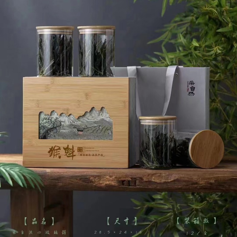 采自然新b款茶叶包装盒空礼盒太平猴魁专用礼盒玻璃罐密封盖高档