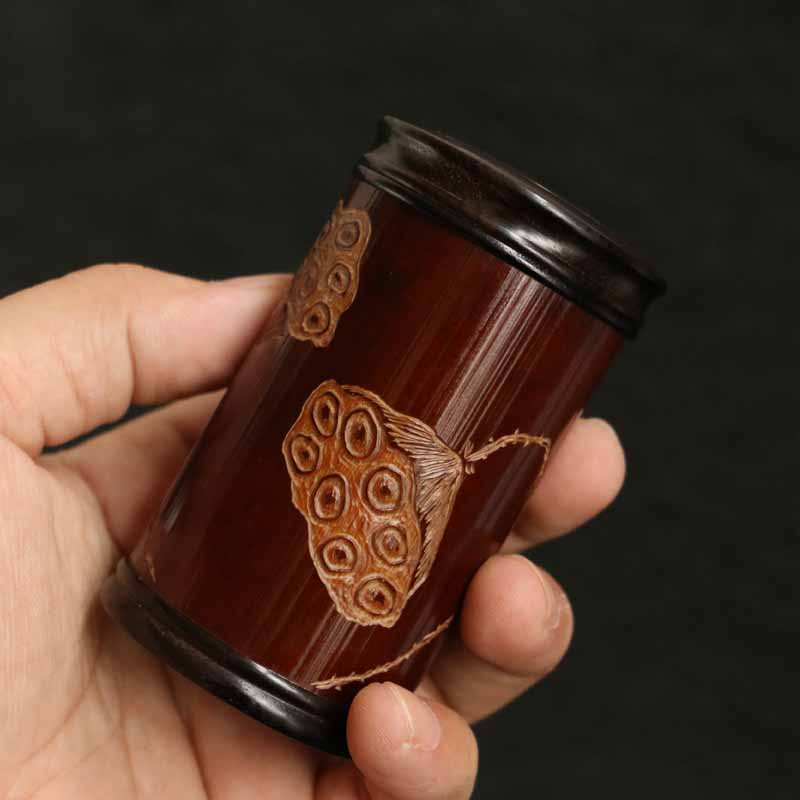 广西百年老煤竹老料纯手工精工雕刻茶道茶叶罐茶仓竹雕竹器工艺品