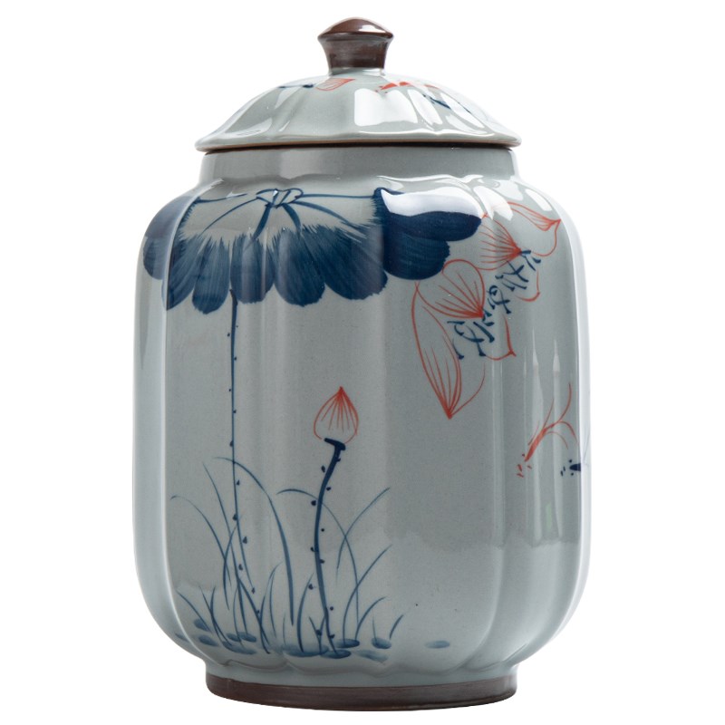 己造 手绘茶叶罐陶瓷密封罐直筒存储白茶普洱绿茶中式家用防潮