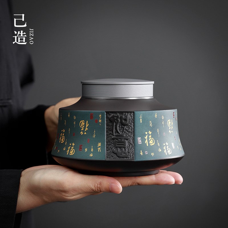 己造 紫砂茶叶罐密封双盖合金吸力螺旋盖家用防潮普洱茶罐复古