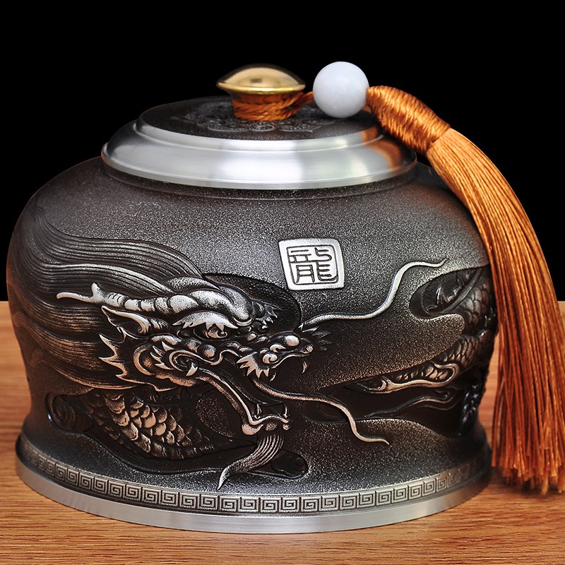 龙行天下廖达锡茶叶罐锡罐纯锡制茶罐密封罐防潮精品礼盒定制礼品