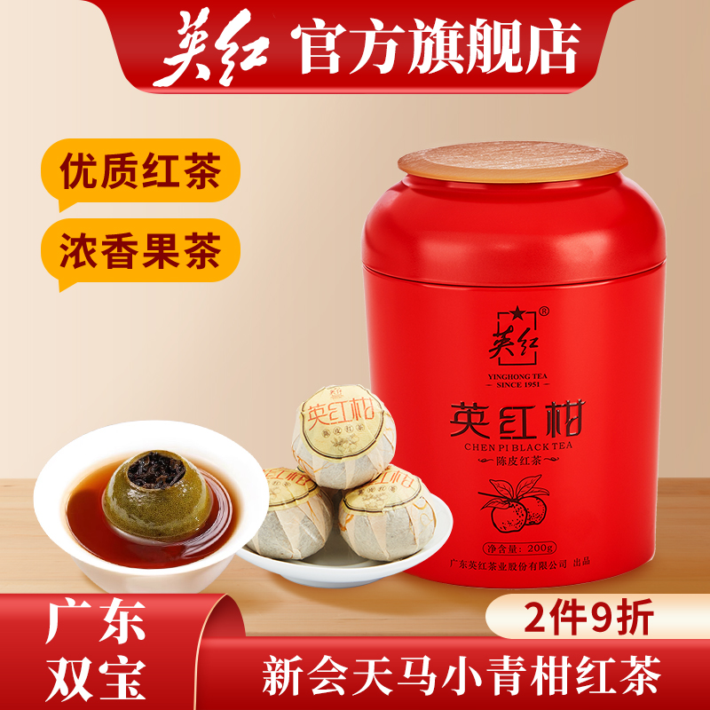 【英红牌】广东英德红茶新会天马小青柑红茶正宗英红柑圆罐装200g