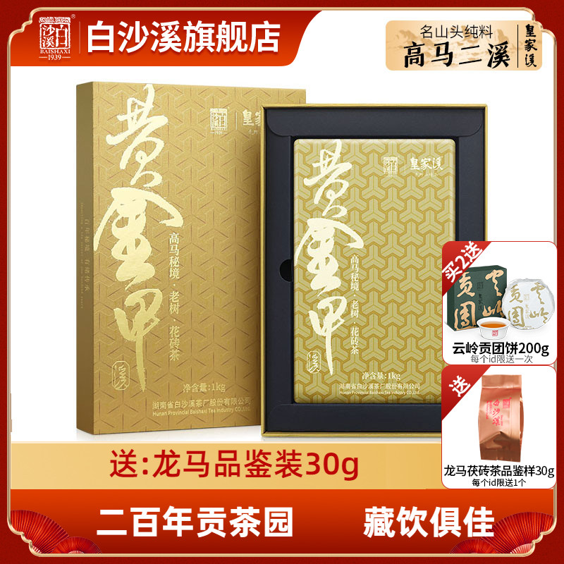 白沙溪湖南安化黑茶正品皇家溪高马产区黄金甲花砖茶1kg荒山茶叶