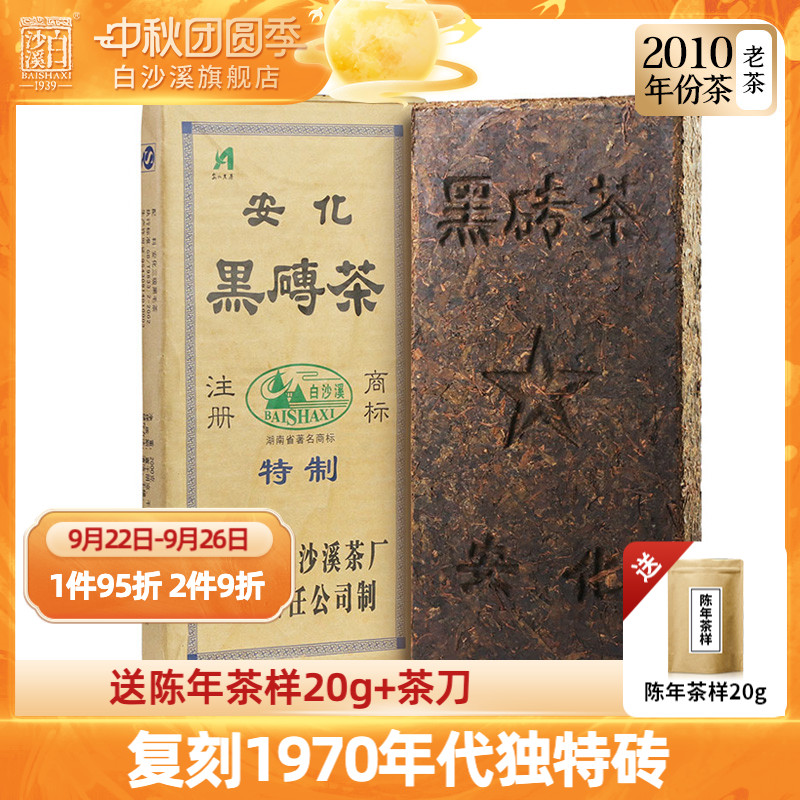 白沙溪正品湖南安化黑茶2010年份正宗五角星黑砖茶2kg陈年茶叶