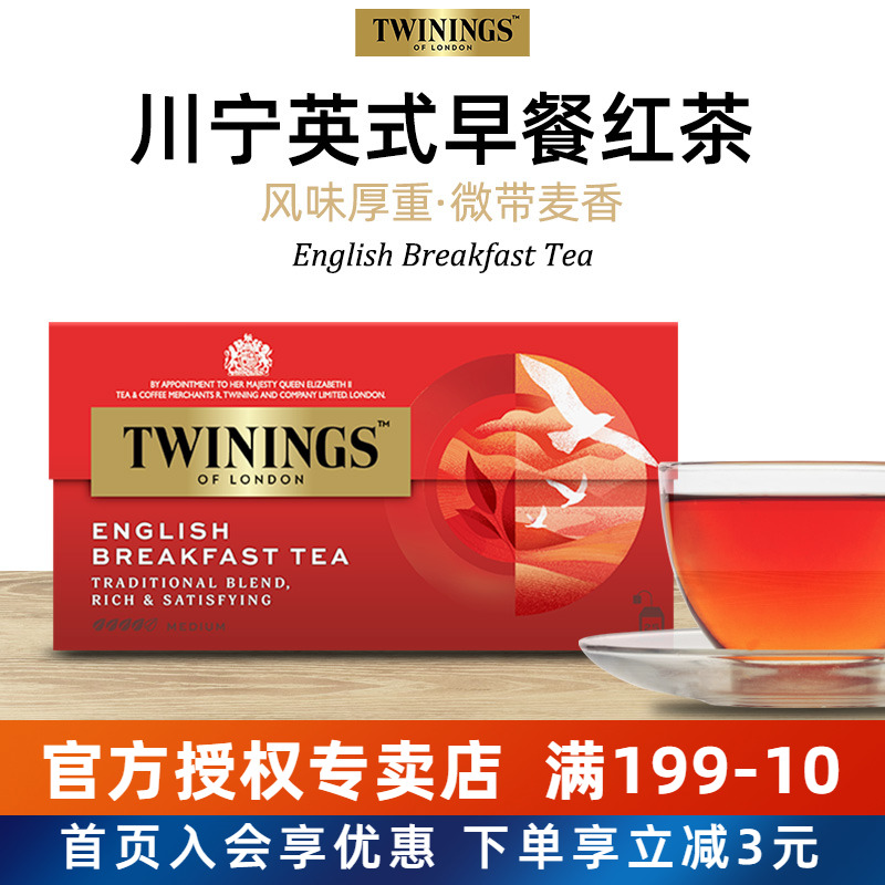 英国TWININGS川宁英式早餐红茶25入盒装进口袋泡茶英式茶叶包正品