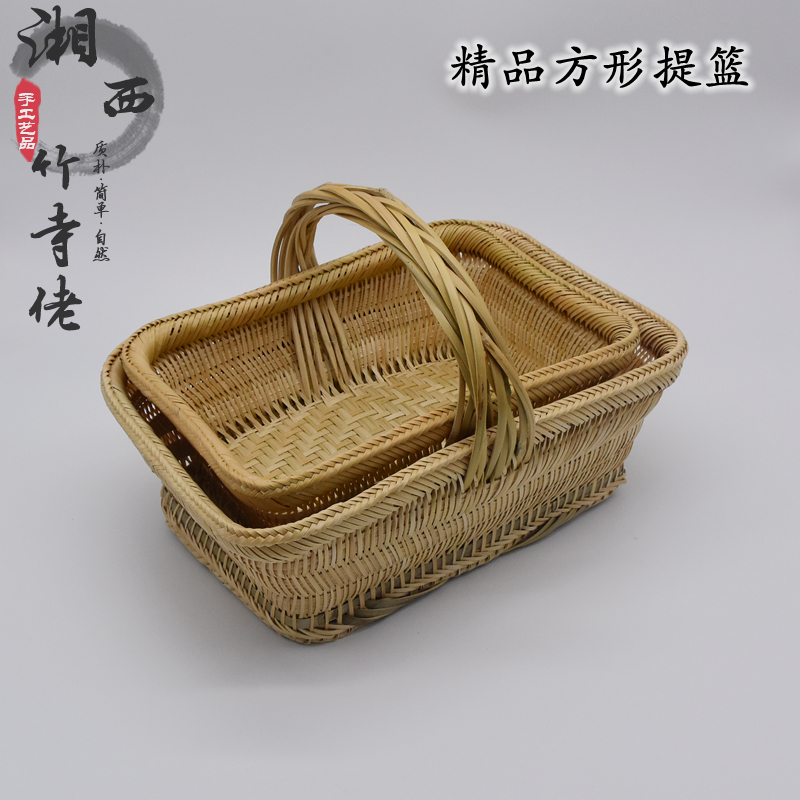 手工精致竹编方形手提篮子竹篮方筐竹篓茶叶采摘果篮表演道具新品