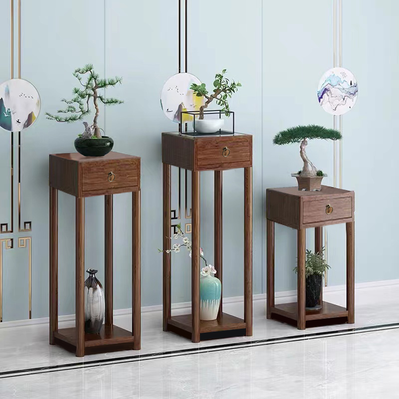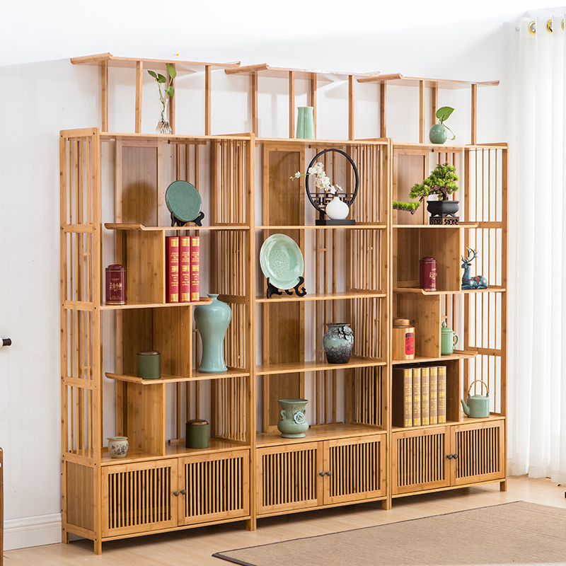 实木禅意书架办公室置物架新中式博古架展示架实木茶叶架书柜