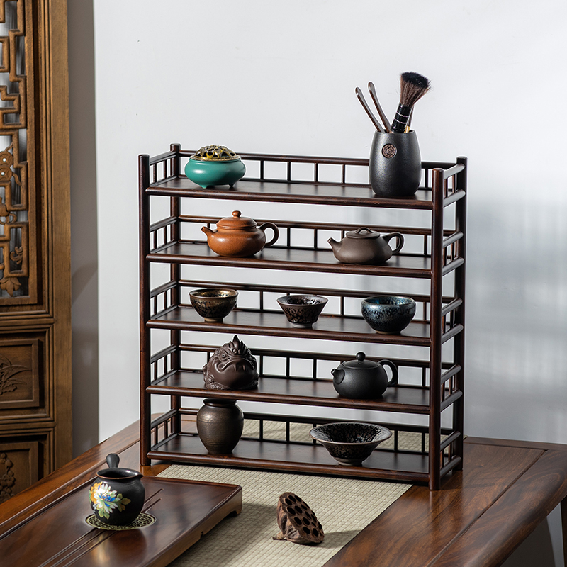 桌面博古架实木中式茶具架子置物架茶叶柜茶桌小型V摆件收纳展示