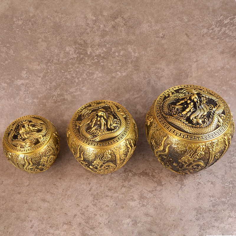 黄铜工艺品龙凤茶叶罐储存罐办公室茶道纯铜茶叶罐金属摆件装饰