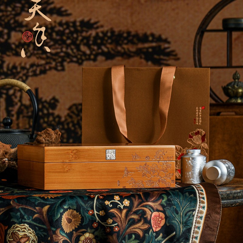 国色竹制高档锡罐6小罐茶叶包装盒空盒岩茶6泡红茶绿茶银针通用