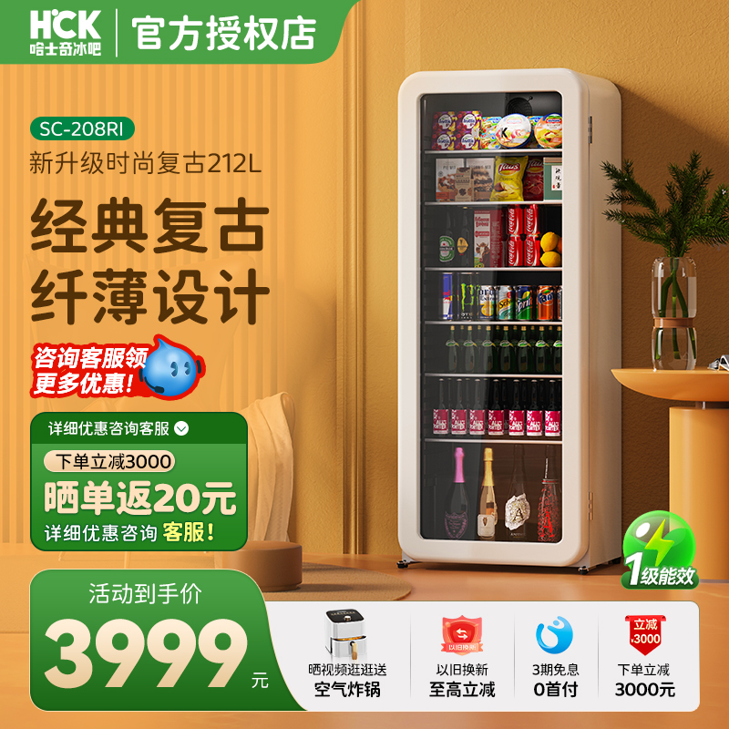 HCK哈士奇冰吧冷藏柜超薄嵌入家用客厅茶叶饮料冰箱办公室高颜值