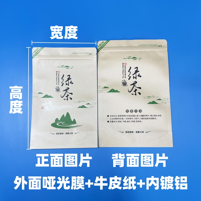 加厚牛皮纸镀铝通用绿茶茶叶自封口包装袋半斤一斤密封拉炼自立袋