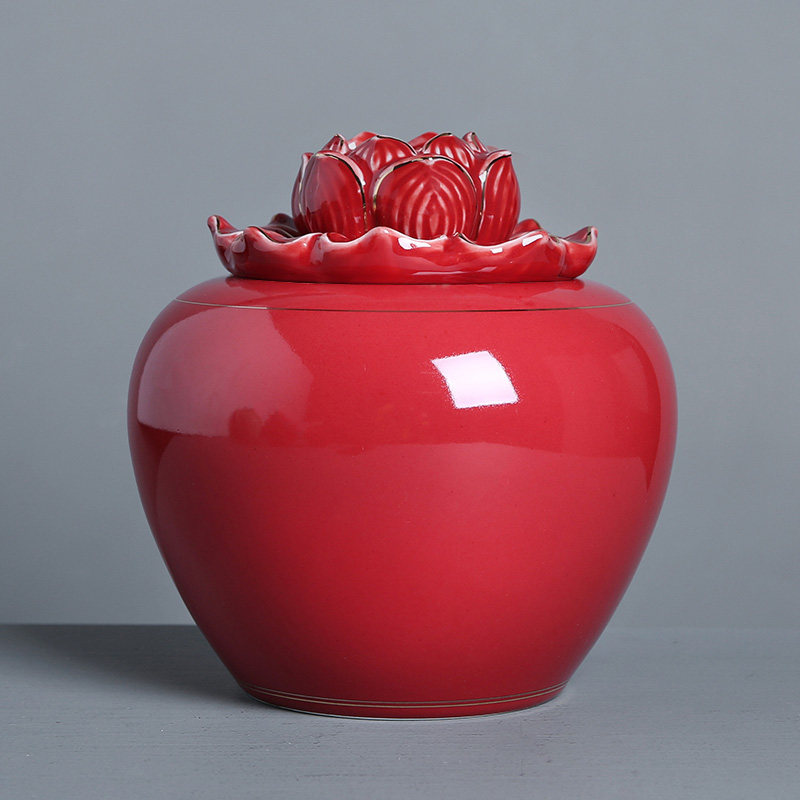 荷花霁红蓝釉茶叶罐陶瓷大中小号密封罐存茶罐普洱红绿茶叶罐家用