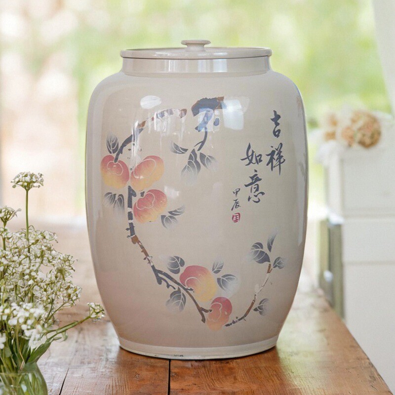 茶叶罐大号白泥缸米桶家用建水紫陶陶瓷米缸全手工云南普洱茶饼缸
