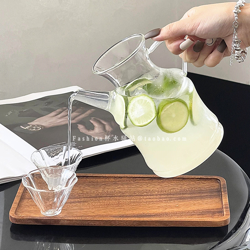 简约绿叶竹节小茶壶高档茶具透明果汁饮料茶叶冷泡仿宋茶壶茶杯