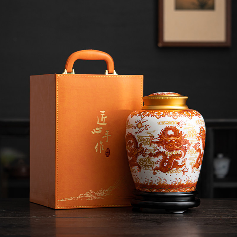 高档大号茶叶罐陶瓷珐琅彩三斤装大容量铝合金盖密封罐存储罐茶仓