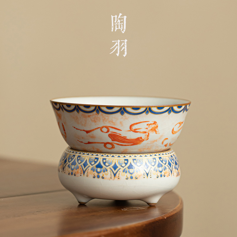 汝窑敦煌飞天茶漏泡茶滤茶器茶叶过滤网创意陶瓷茶隔茶滤茶具配件