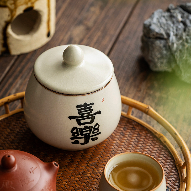 汝窑茶叶罐密封罐家用小号陶瓷定制储茶罐醒茶罐存茶罐茶具配件
