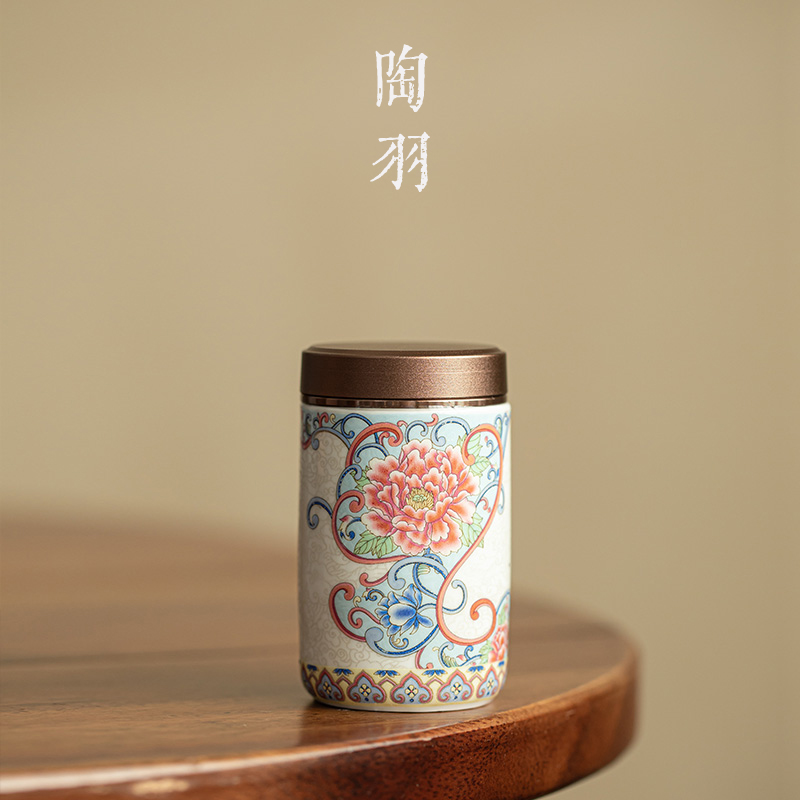 仿古珐琅彩掐丝牡丹小茶叶罐高颜值密封罐小号储存罐防潮功夫茶具