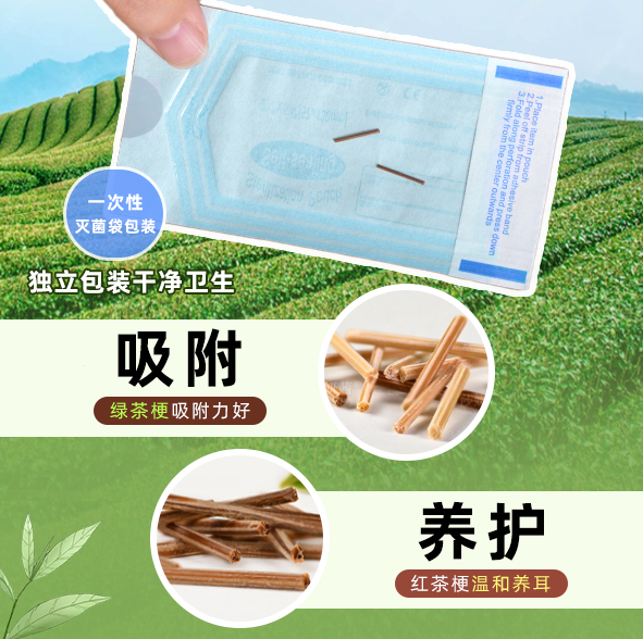 茶叶梗耳棒养耳洞自然红绿茶耳钉针温和睡觉免摘防堵学生植物耳棍