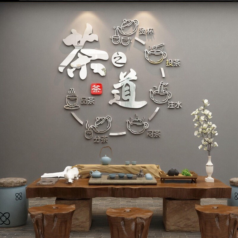 茶道背景墙壁画茶室布置用品墙装饰楼馆创意文化立体3d贴纸茶叶店