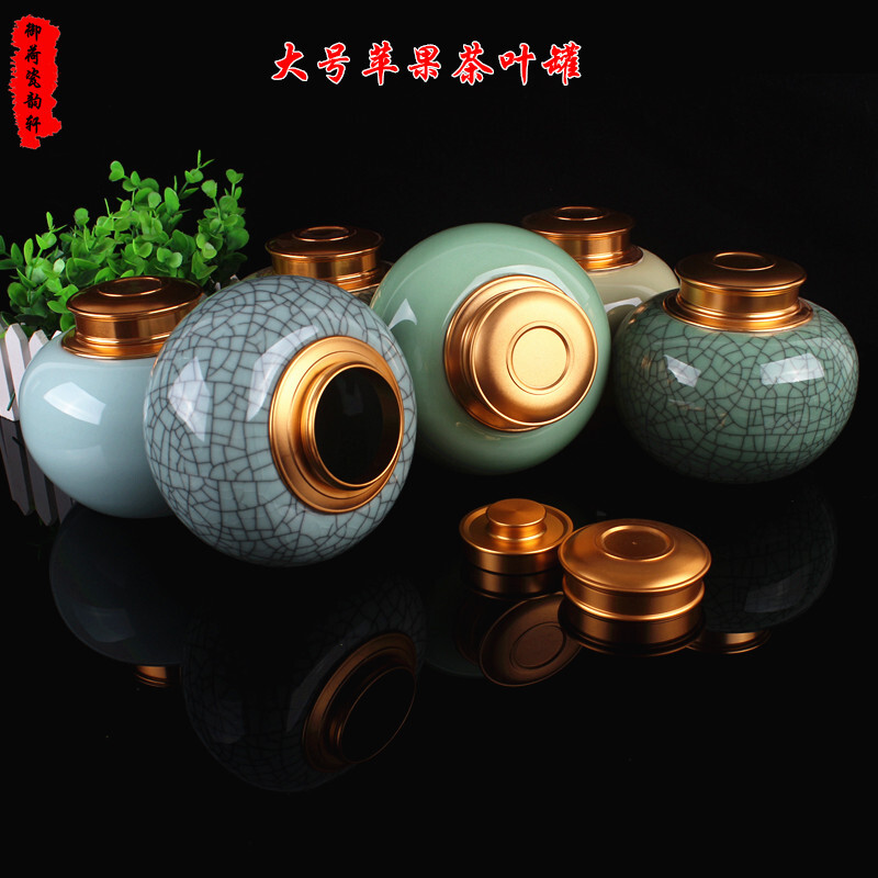 精品青瓷家用茶叶罐储存罐中式陶瓷大号苹果半斤装金属头密封罐