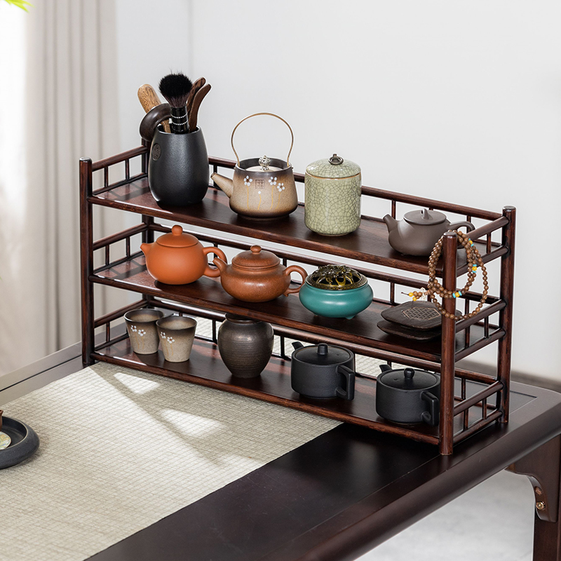桌面博古架中式茶叶茶具收纳架办B公室实木茶杯置物架紫砂壶摆放