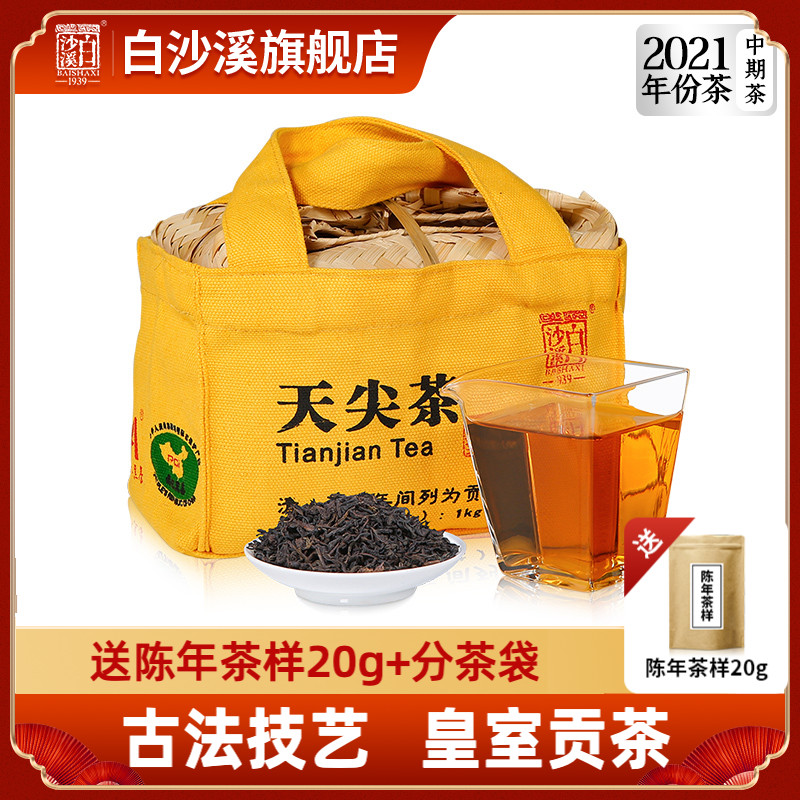 白沙溪官方正品湖南安化黑茶散茶叶一级 正宗2021年篾篓天尖茶1kg