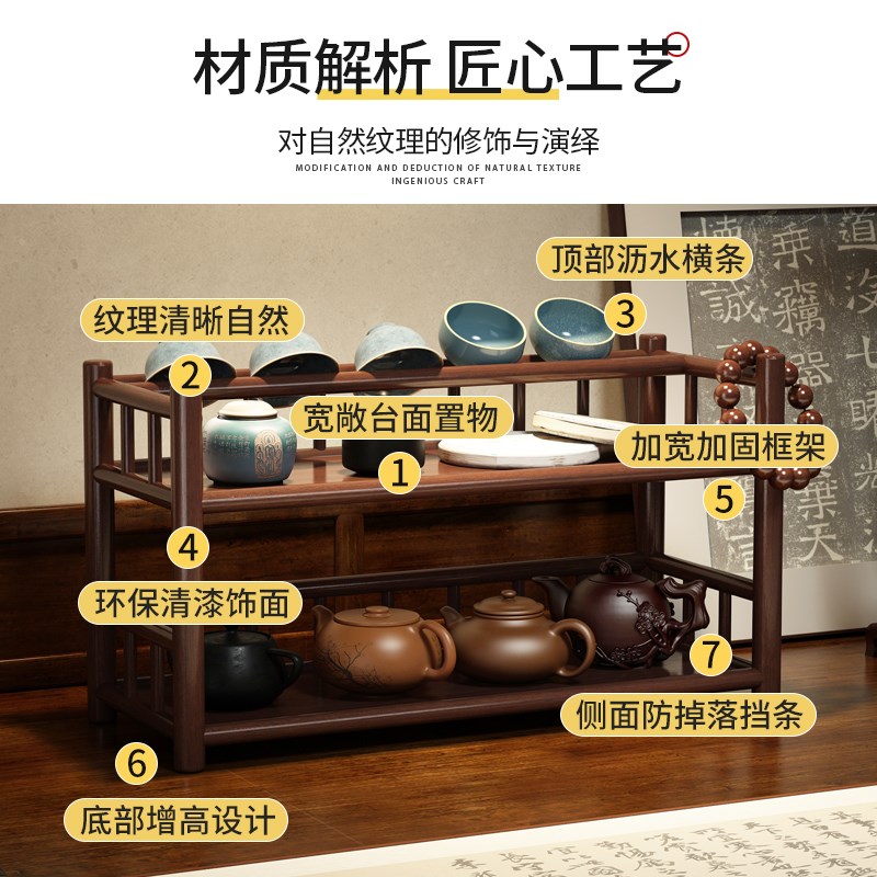 桌面博古架实木中式茶具架子置物架茶叶柜茶M桌小型摆件收纳展示