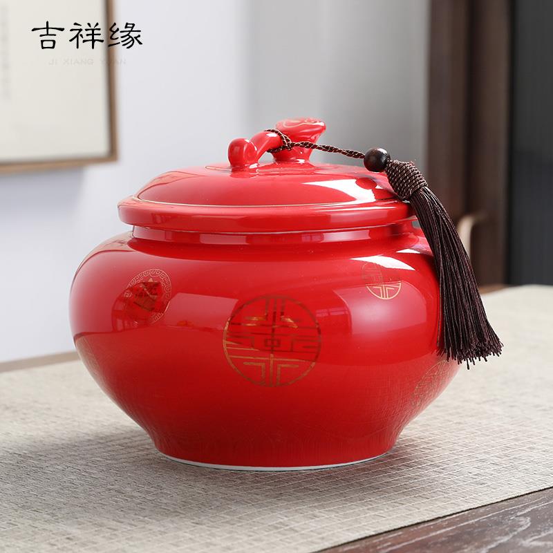 吉祥缘中国风如意型陶瓷茶叶罐大中号防潮茶叶包装礼盒装半一斤罐