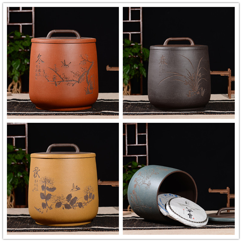 紫砂七子饼茶叶罐大号储茶缸宜兴手工陶罐存茶桶大码普洱密封茶罐