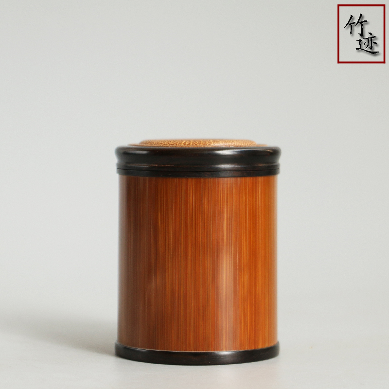 大直径6厘米茶道老玉竹苏工黑檀木螺纹口茶仓茶叶T罐文玩把玩竹迹