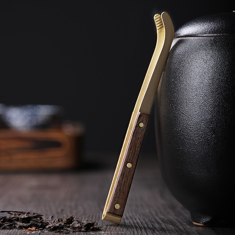 速发纯铜茶夹子茶杯夹子镊子茶道功夫茶具配件黑檀实木茶叶夹子A