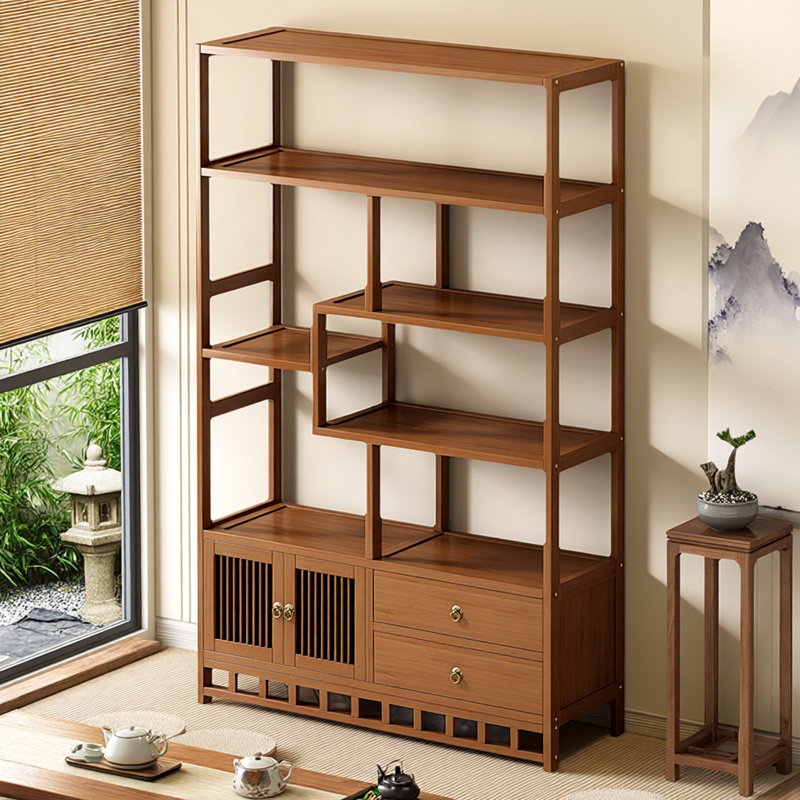 新中式博古架茶室摆件置物架茶叶展示柜多层隔断楠竹落地式多宝阁