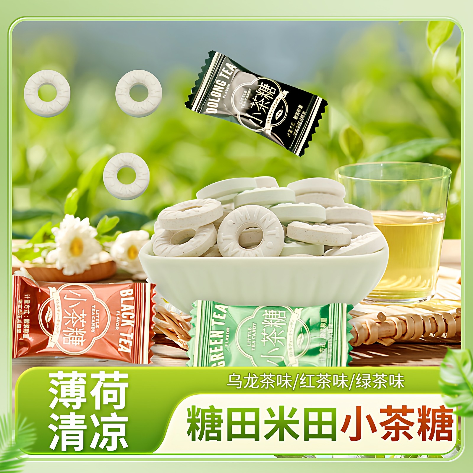 糖田米田小茶糖清凉薄荷糖红茶绿茶乌龙茶叶含片散装招待糖果年货